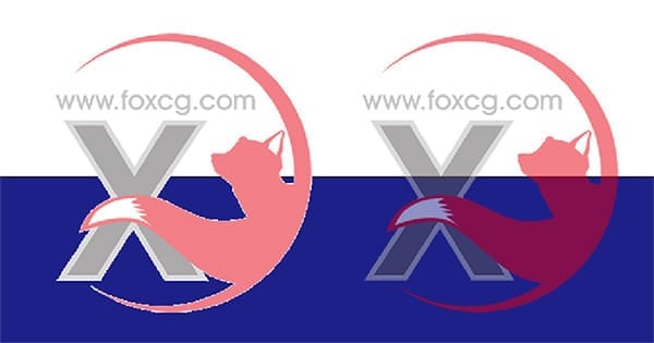 로고에 50% 투명도 적용후 배경위에 올린 GIF(좌), PNG(우) 이미지 (리사이즈)