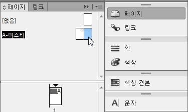 페이지 창에서 마스터페이지를 더블클릭해서 마스터페이지 편집으로 갑니다.