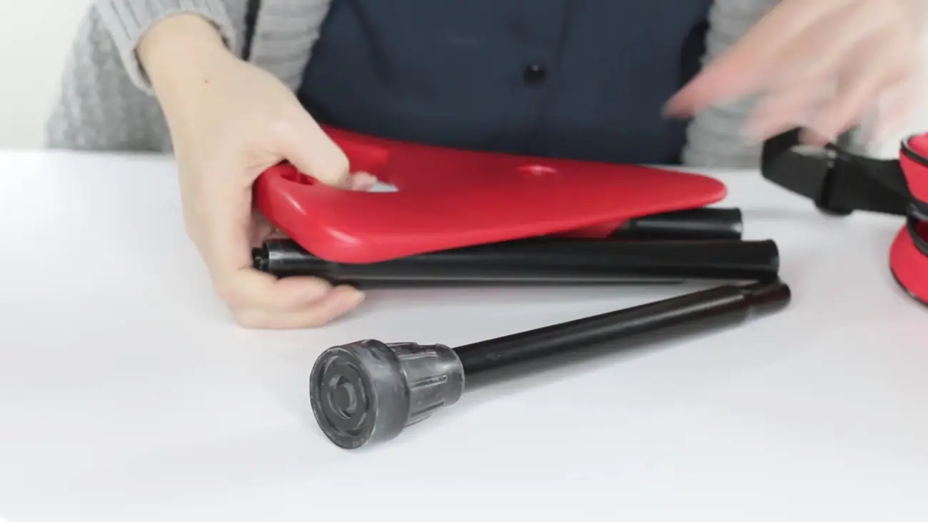 전용 파우치에서 제품을 꺼내면, 접혀져 있는 다리 부분이 자동으로 펼쳐져서 지팡이 모양으로 사용할 수 있습니다.