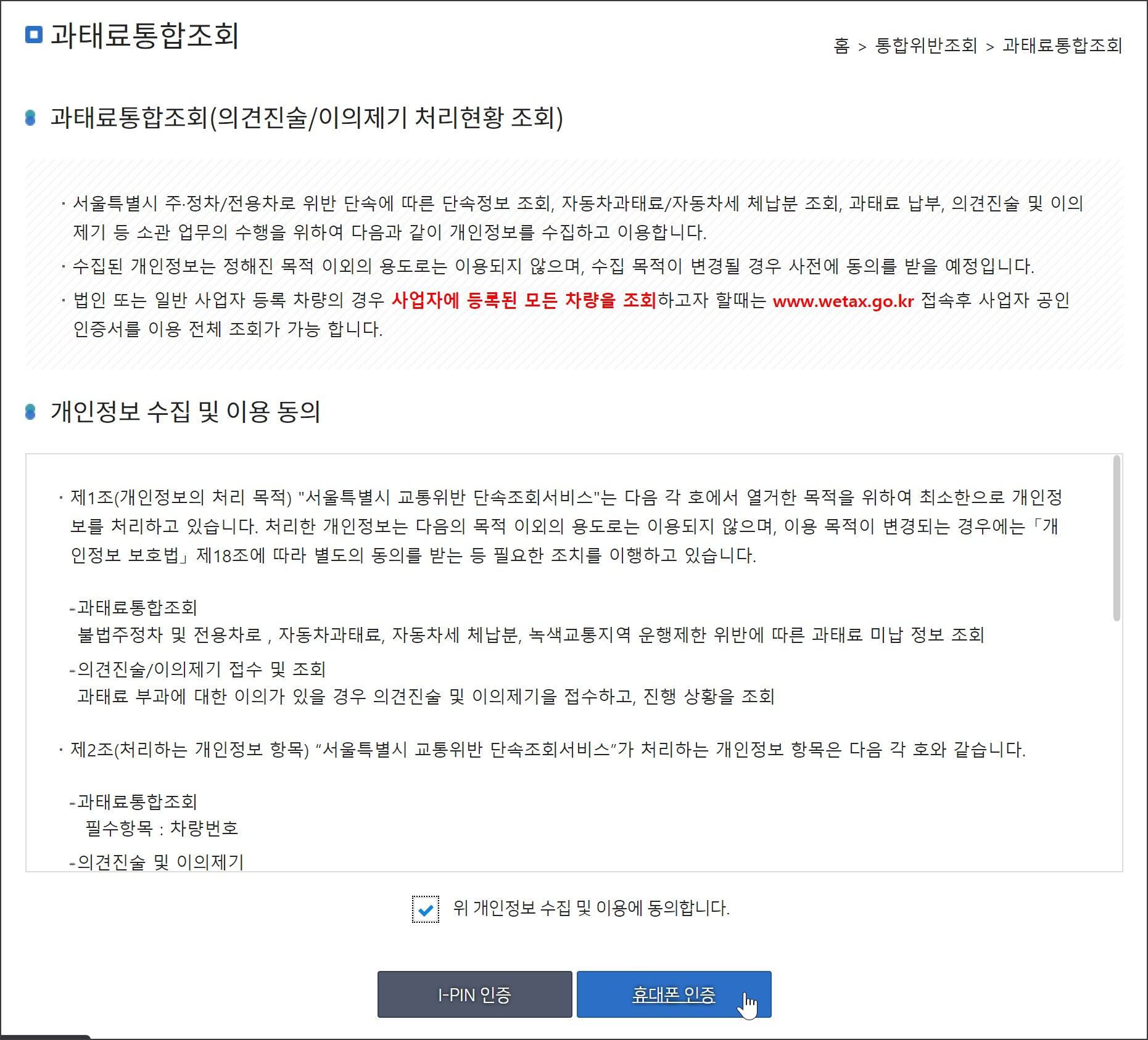 서울특별시 단속조회