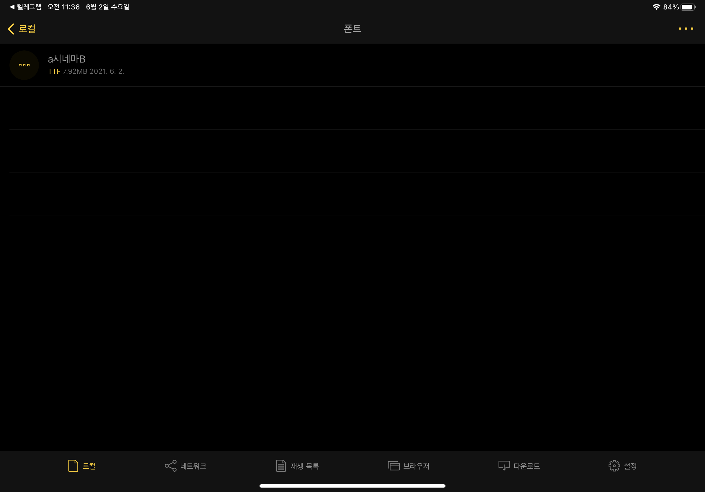 작은 용량의 파일을 아이폰/아이패드로 전송하기에는 텔레그램이 유용합니다. (아이튠즈 등 다른 방법도 가능합니다.) 자막으로 원하는 글꼴을 텔레그램의 '저장한 메시지'로 보냅니다.