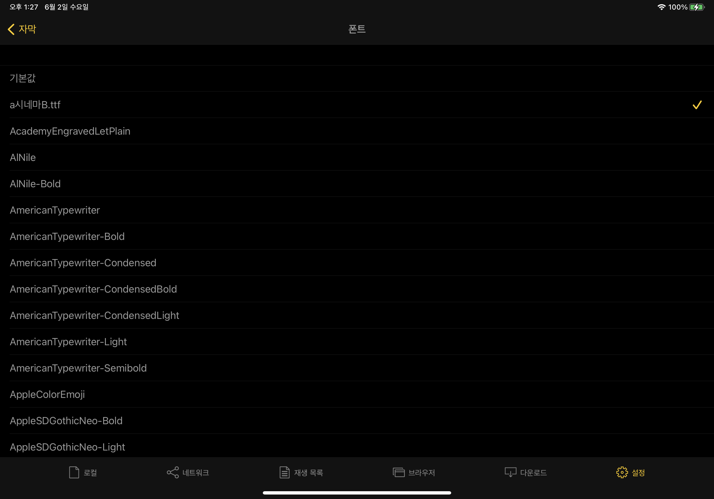 nPlayer는 iOS 폰트를 이용하여 자막 표시를 할 수 없고, 앱에 폰트를 삽입하여 사용해야 합니다.