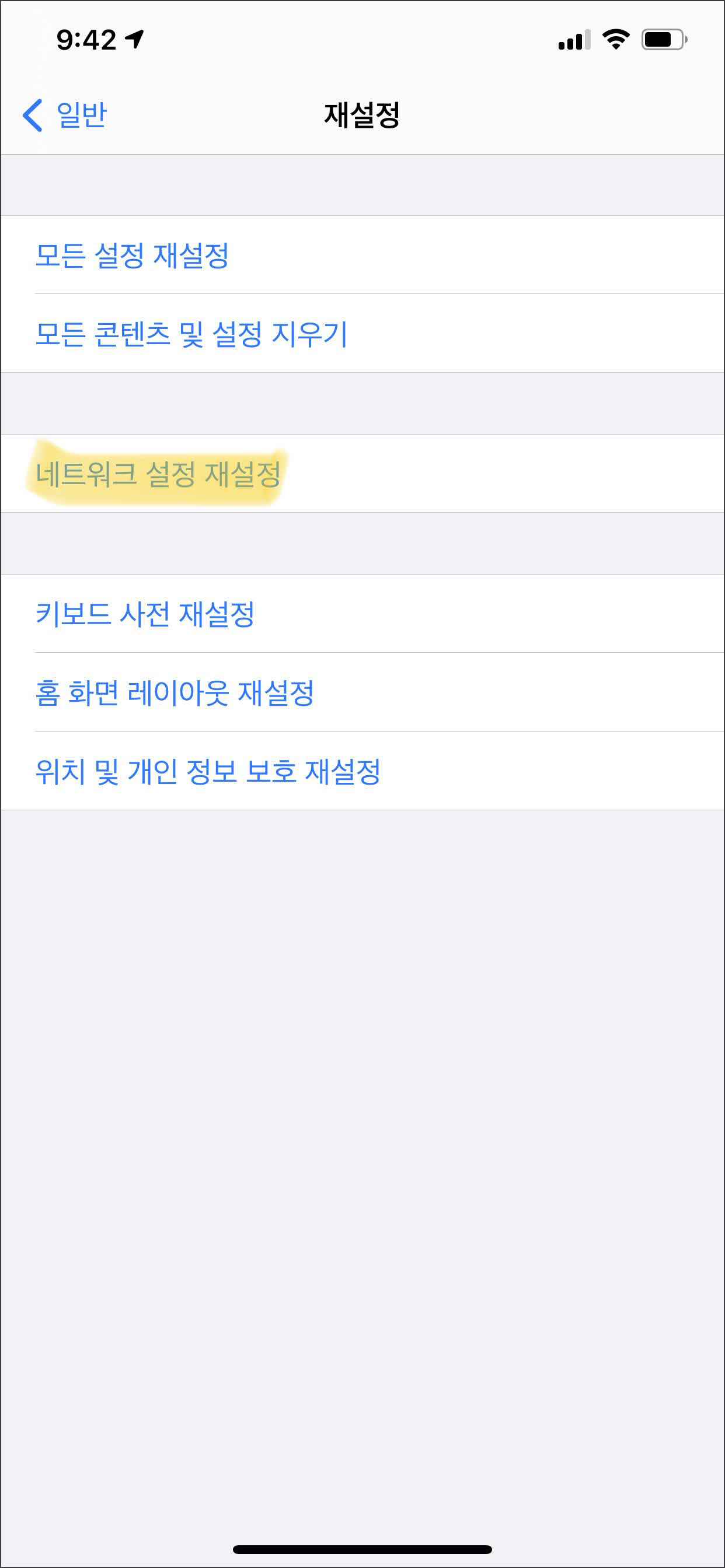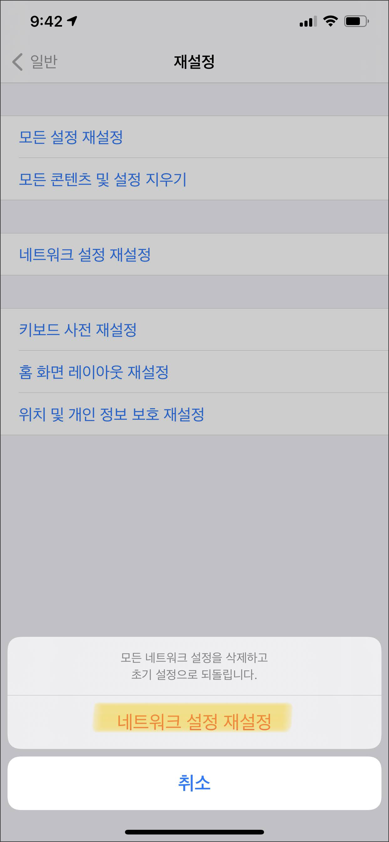 아이폰의 네트워크 설정을 초기화하면 네트워크 연결 속도를 향상할수 있습니다.