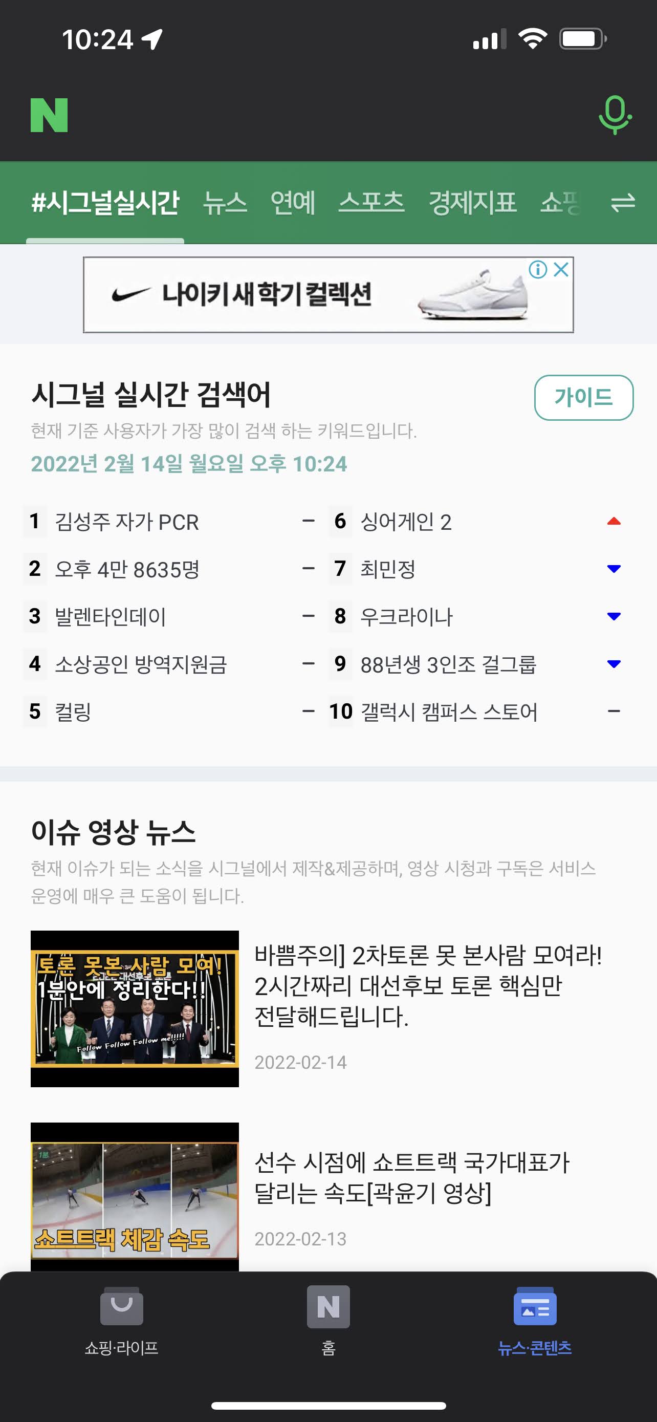 스마트폰의 네이버 앱에서 signal.bz/news 를 검색합니다.