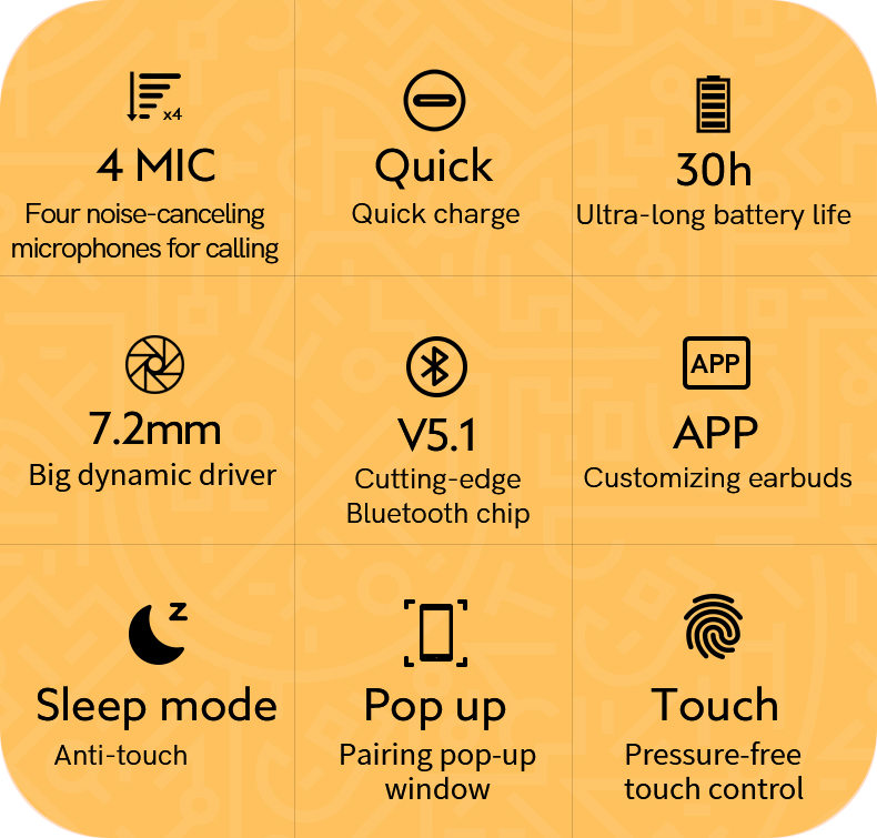 4개의 마이크가 이어버드에 내장되어 있어서 통화나 음악 감상 시 주변의 소음을 약간 감소시키는 기능이 있습니다.