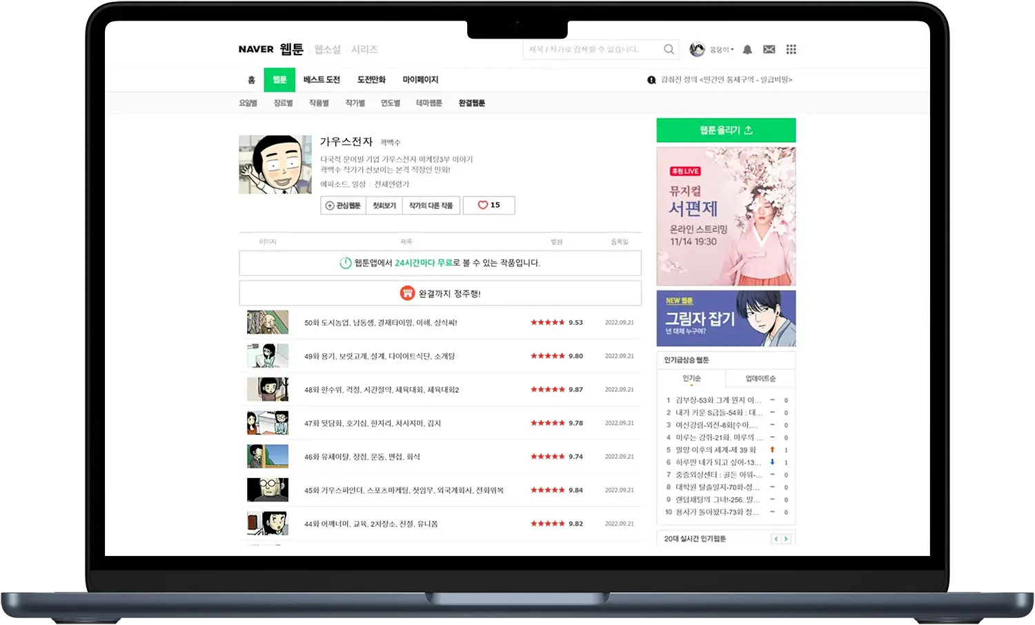 가우스전자의 원작은 네이버 웹툰으로 소개된 웹툰을 원작으로 하고 있습니다. 한국의 직장 문화를 재미있는 코믹 코드를 섞어 잘 담아내었으며, 직장인이 출근하듯 매주 5회 연제를 하여 네이버 웹툰 최초의 2000화를 돌파한 웹툰입니다. 무려 8년에 걸친 연제였습니다.