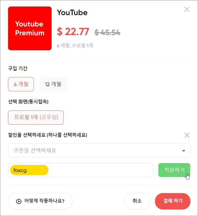구독 상품을 구매하실 때, 제가 여러분들께 드리는 프로모션 코드를 입력하시면, 더욱 저렴한 가격으로 서비스를 이용하실 수 있습니다.