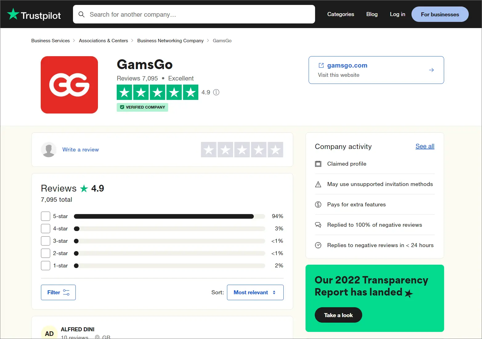 트러스트 파일럿(Trustpilot)등 기업 서비스에 대해 리뷰하는 사이트에도 겜스고는 5.0 만점의 4.9점을 기록할 정도로 많은 이용자들이 만족하는 서비스입니다.