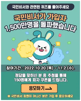 국민비서 홈페이지를 통해 응모할 수 있으며, 정답을 맞힌 분 중에 추첨하여 150명에게 피자 쿠폰을 준다고 합니다.