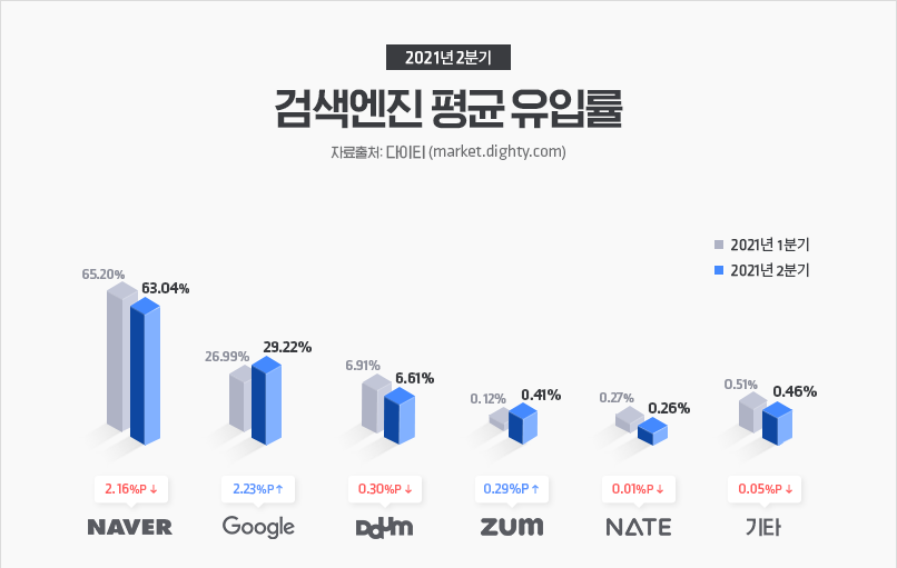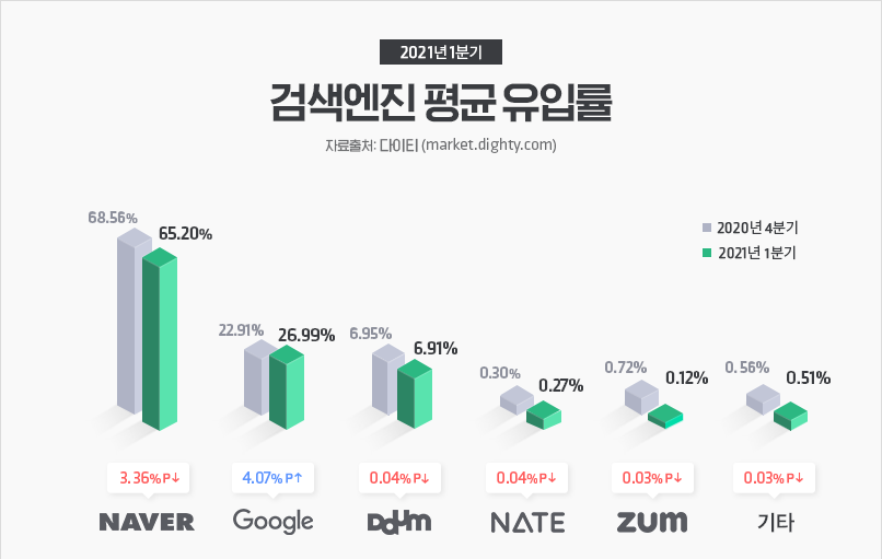 위의 자료를 보면 검색엔진 평균 유입률은 네이버의 경우 매 분기 2~3% P로 하락을 하고 있는 반면 구글은 반대로 매 분기 성장하고 있는 것을 확인할 수 있습니다. 현재는 검색엔진 유입률의 30% 가까운 수치를 나타내므로 네이버 블로그라 할지라도 더 이상 네이버 검색에만 의존하는 것이 아니라 구글에서의 검색을 염두에 두어야 한다는 것입니다.