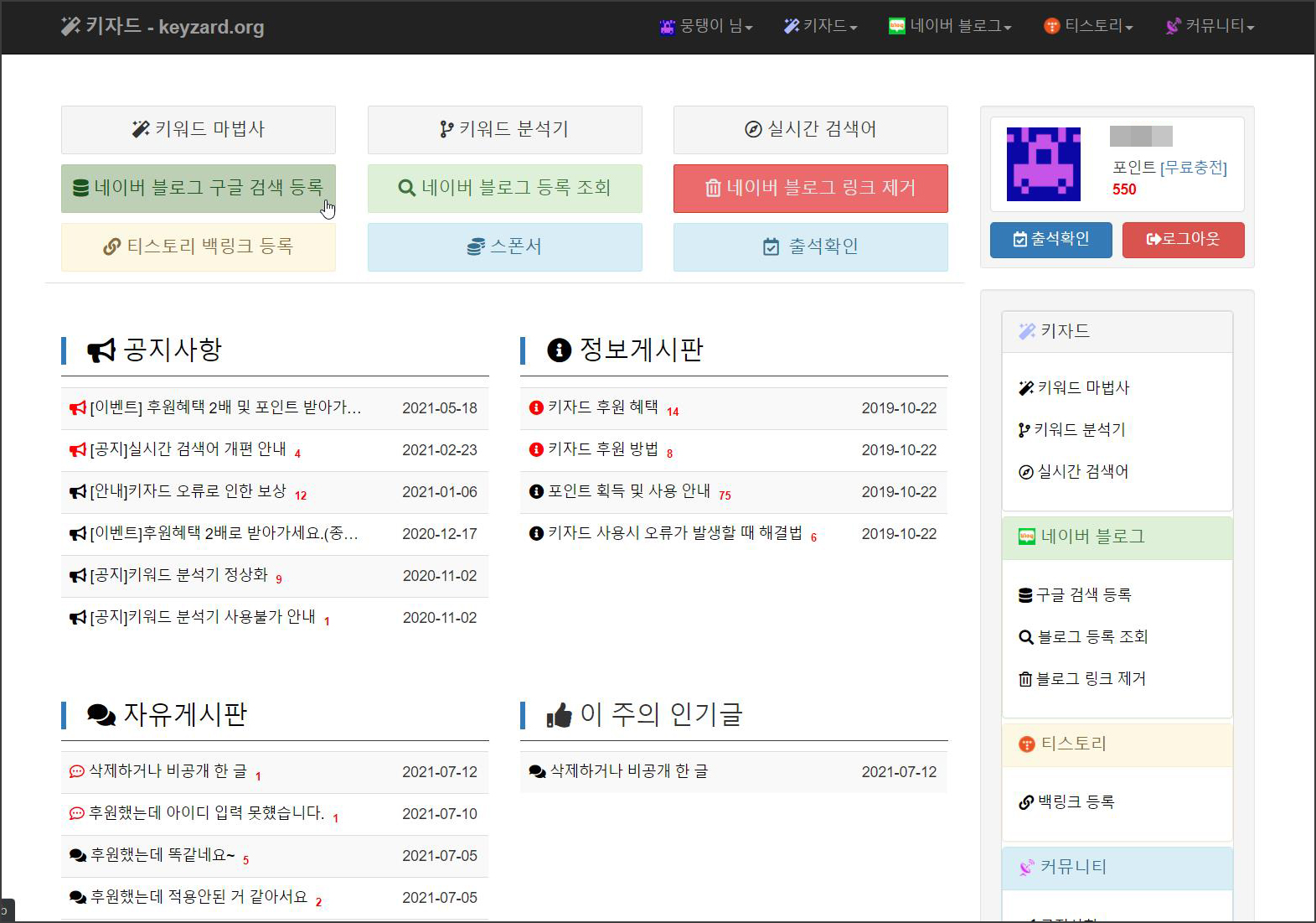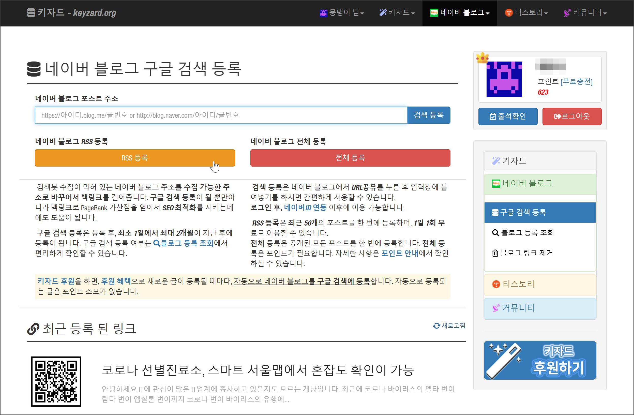 키자드(keyzard)에 네이버 블로그 구글 검색 등록하기