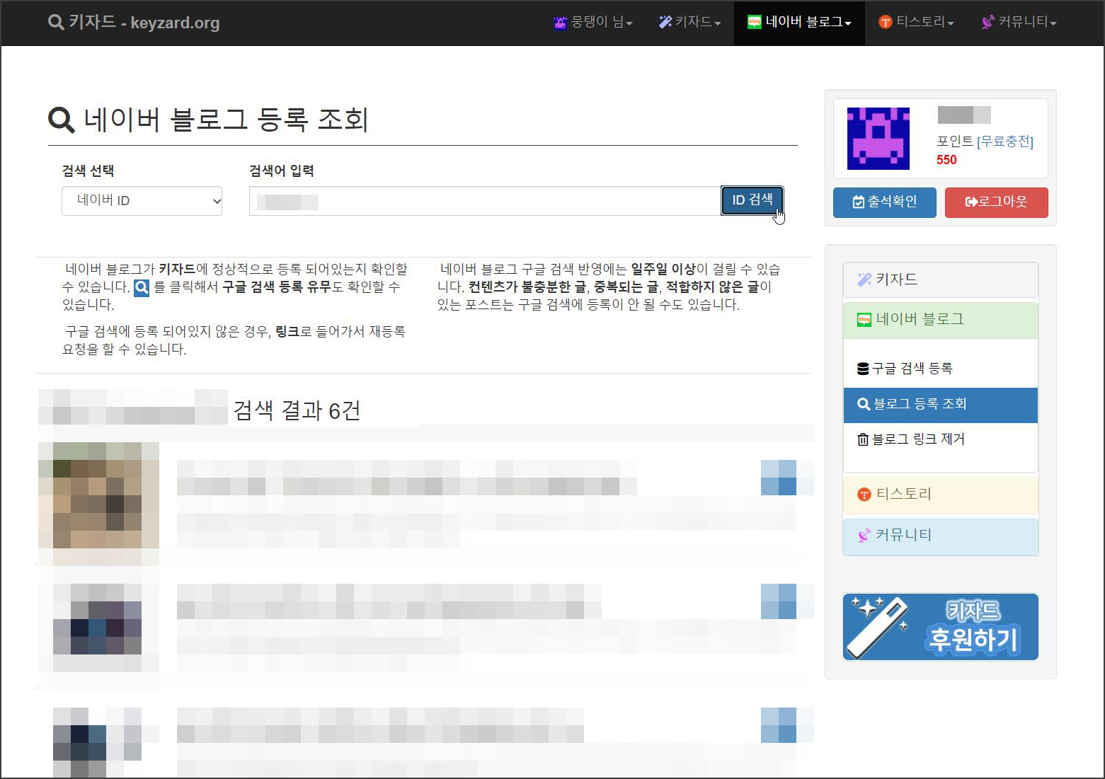 키자드(keyzard)는 구글에서 검색할 경우 네이버블로그가 노출될 수 있도록 백링크를 통해 검색 엔진 최적화(SEO)를 할 수 있는 무료 서비스입니다.