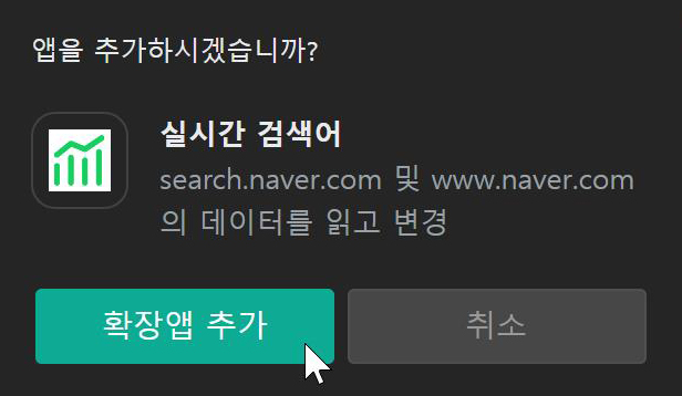 상단에 '실시간 검색어'를 입력하여 검색하면 '실시간 검색어' 확장 앱을 검색할 수 있습니다.