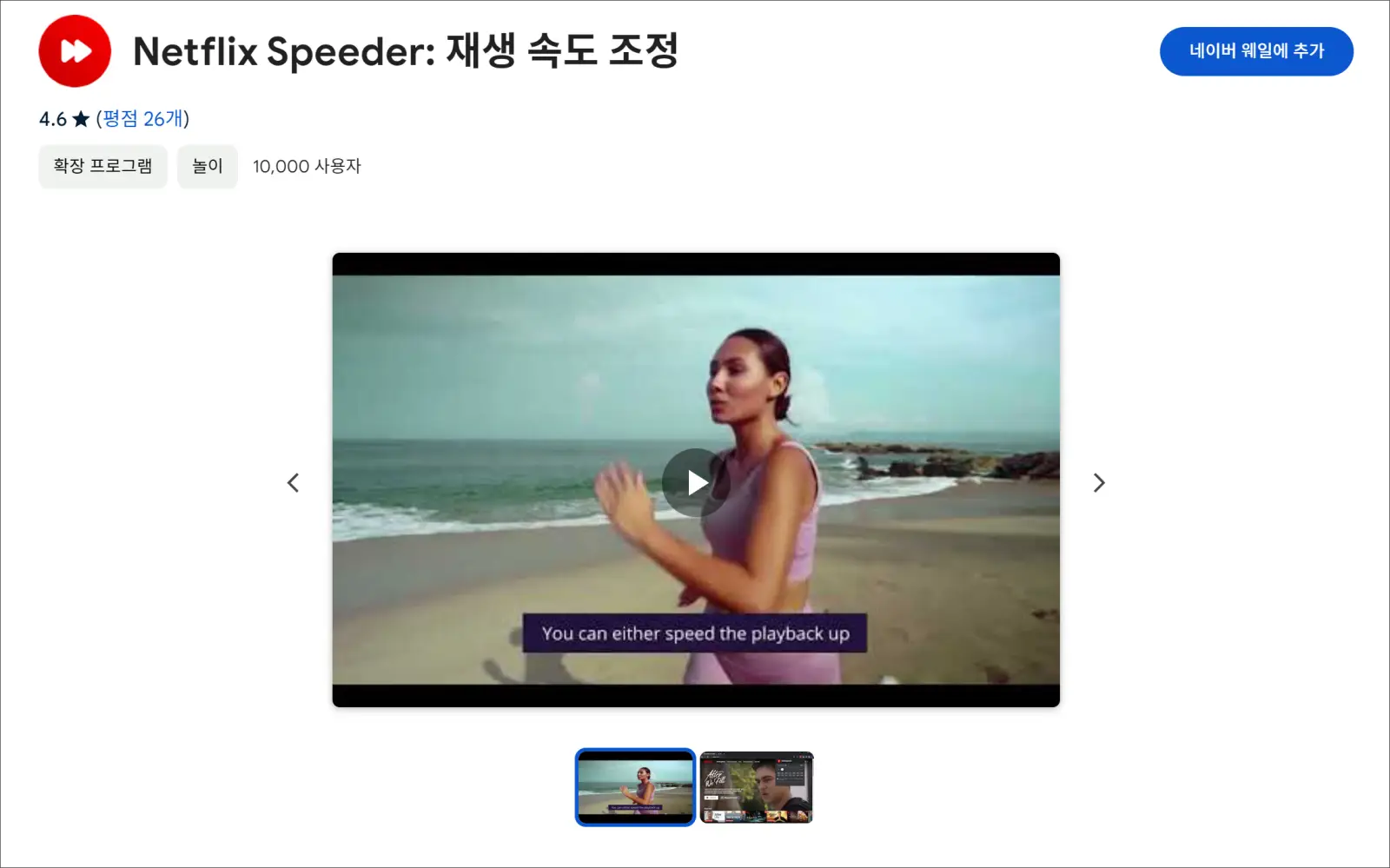 광고형 요금제 사용자라도 PC에서 브라우저 확장 프로그램을 이용하면 배속 설정이 가능합니다.