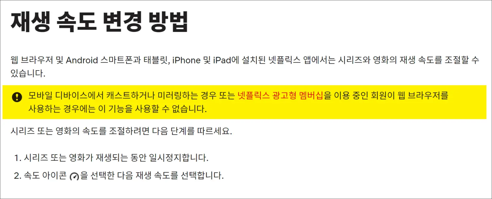 "넷플릭스 광고형 스탠다드 재생속도 배속 설정 방법"