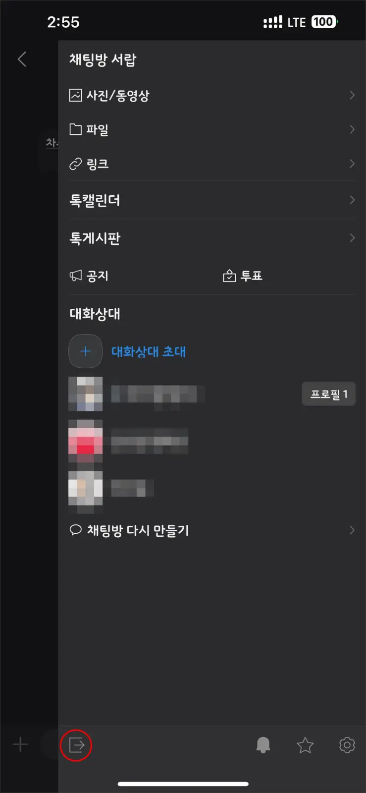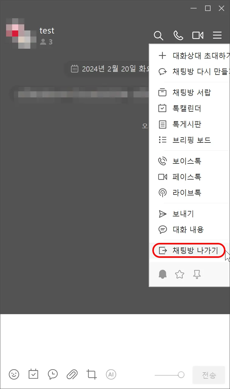 - 하단의 '채팅방 나가기'를 선택합니다.
