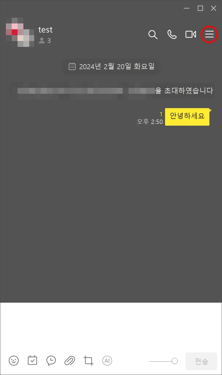 - 단톡방 우측 상단의 햄버거 아이콘으로 불리는 ☰ 메뉴를 선택한 후
