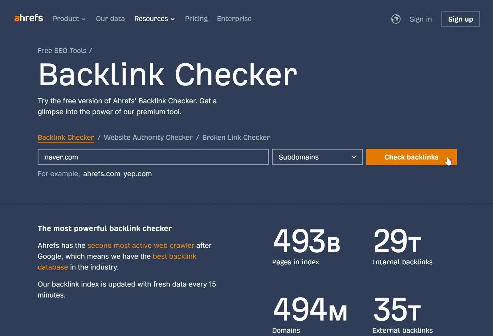 | 백링크 수 | 연결된 도메인의 수와 질을 고려합니다. | 당신의 사이트에 링크를 준 다른 사이트들의 수 |