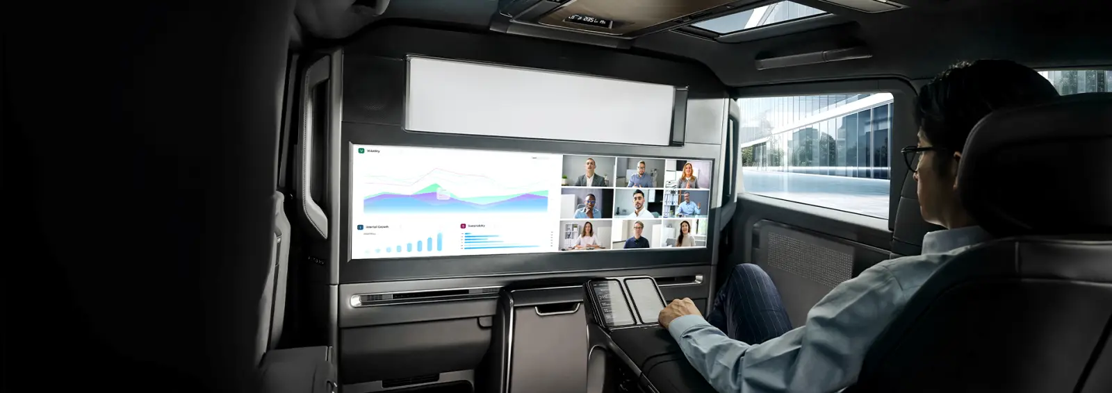 LM 500h는 고급스러운 인테리어와 함께 다양한 편의 사양을 갖추고 있습니다. 48인치 울트라 와이드 디스플레이는 대화면 영상 감상부터 멀티태스킹까지 가능하게 합니다. 2열 VIP 시트는 독립 시트로 설계되어 편안한 이동 경험을 제공합니다.