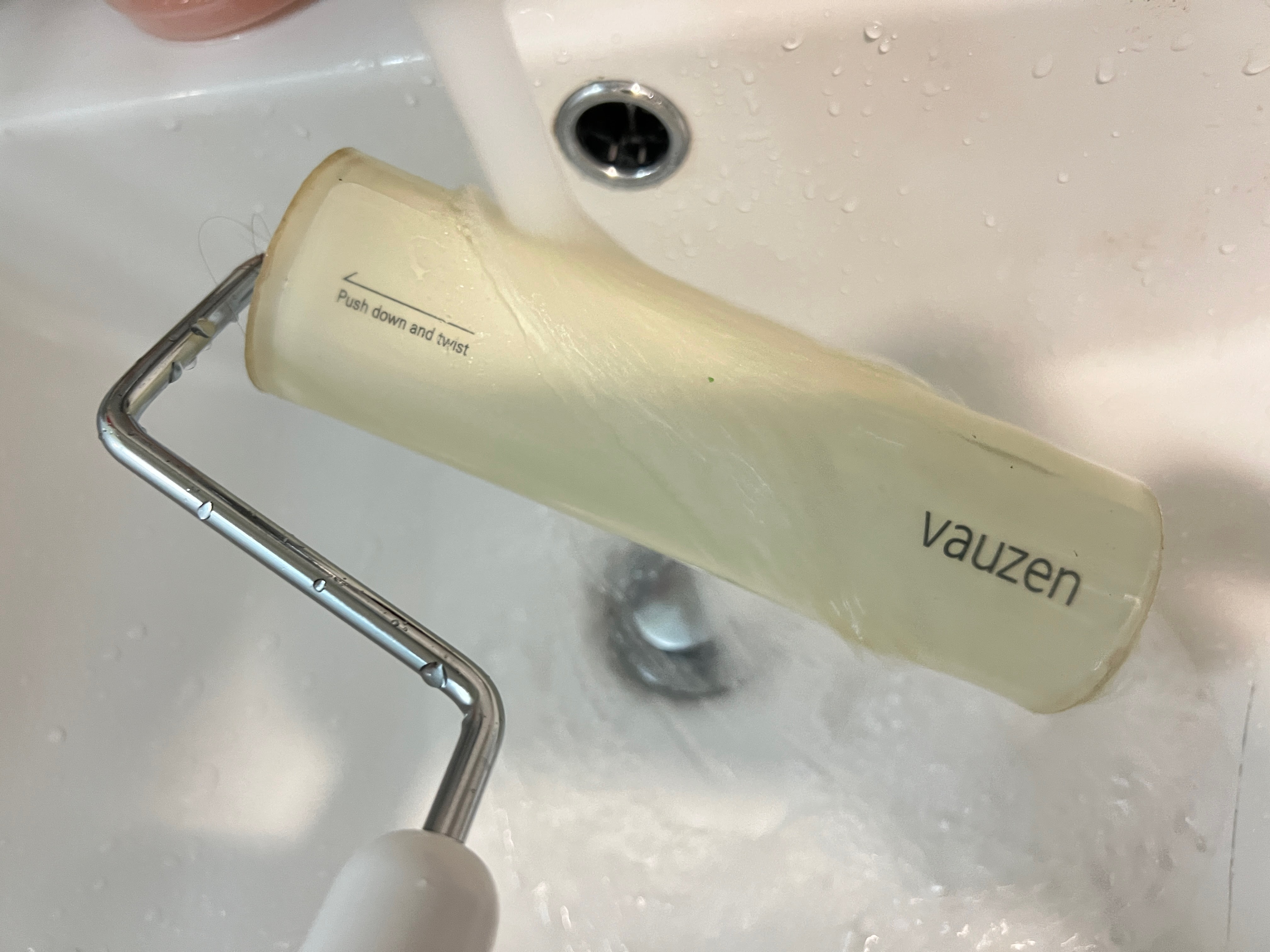 위와 같이 롤이 오염되었을 경우에는 물로 깨끗하게 씻어내고 다시 사용이 가능합니다. 세면대보다는 샤워기로 세척하는 것이 세면대 막히는 것을 방지할 수 있을 것 같더군요.