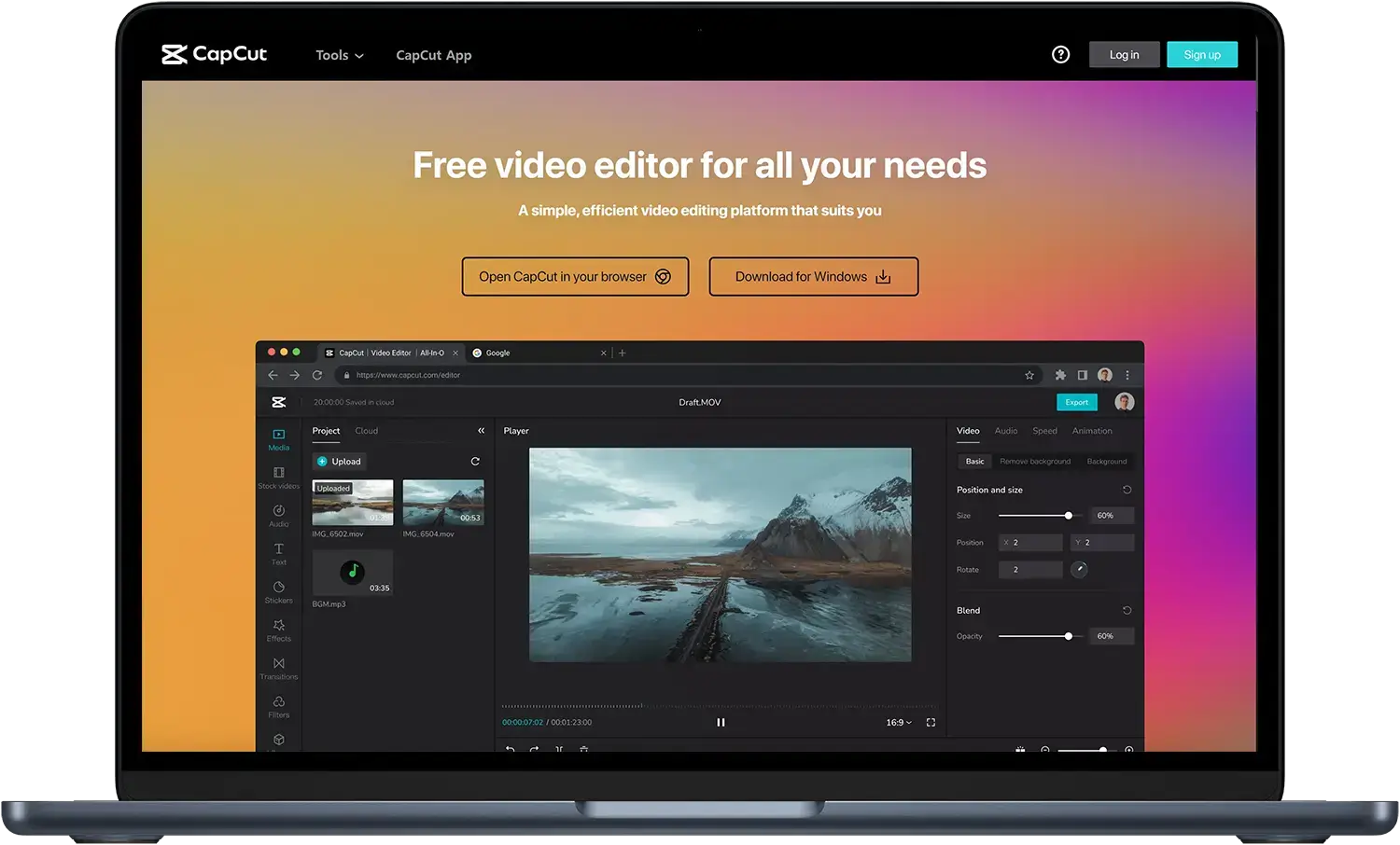 무요 동영상 편집앱으로 유명한 캡컷(CAPCUT)이 윈도우즈용 버전과 웹버전을 출시했습니다. 누구나 워터마크 없이 무료로 사용할 수 있을 뿐 아니라 프로급에 준하는 편집 기능이 있어서 추천할 만한 동영상 편집 프로그램 입니다.