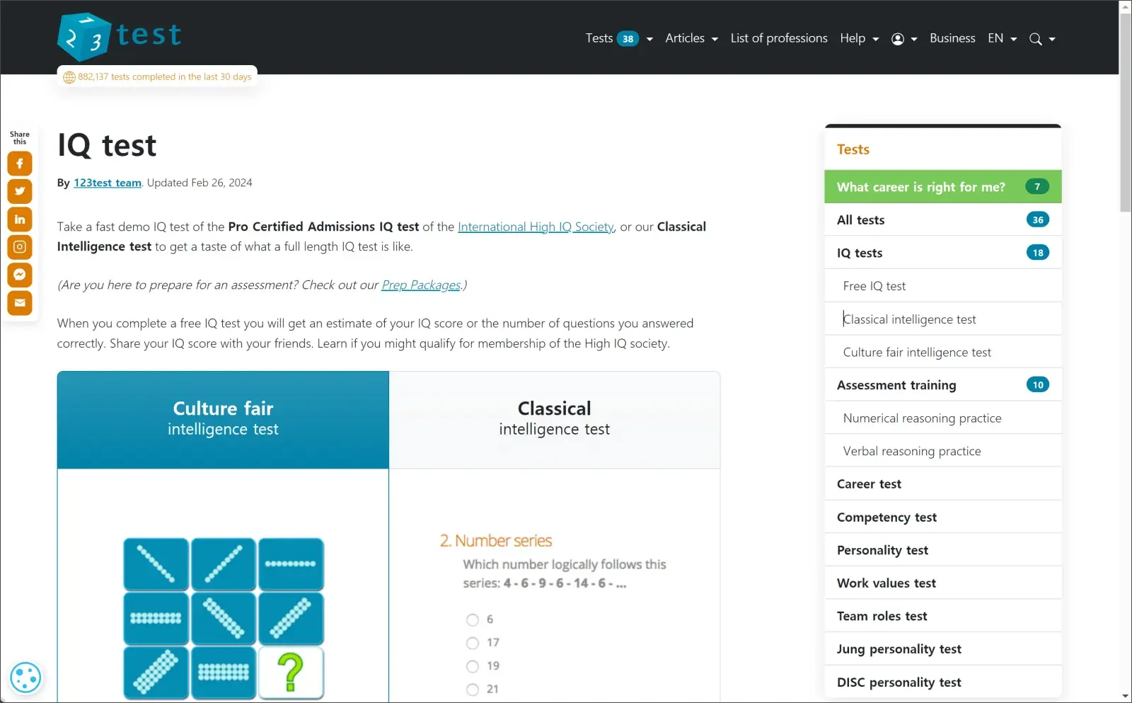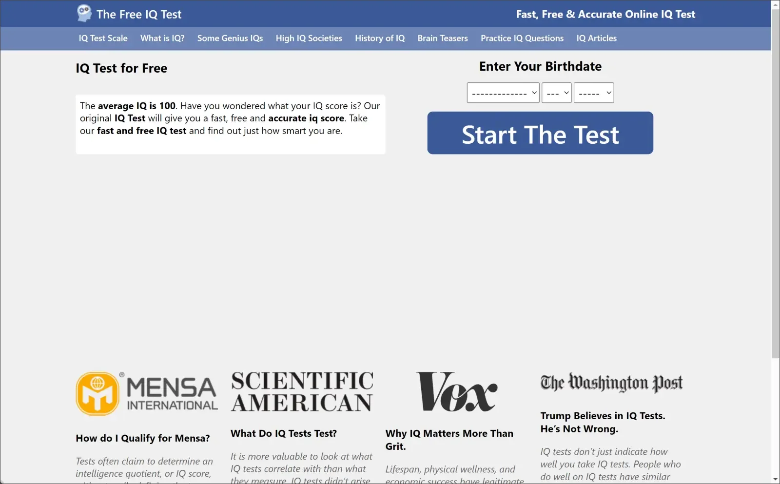 무료 샘플 테스트를 제공하여 대략적인 IQ 점수를 확인할 수 있습니다.
