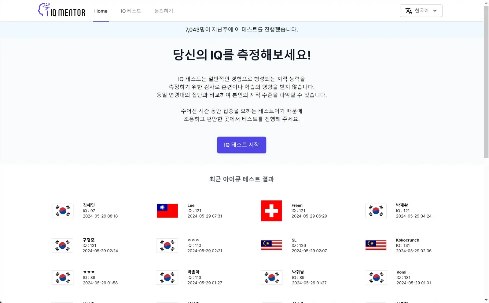 간단한 20문항의 테스트로 빠르게 IQ를 측정할 수 있습니다.