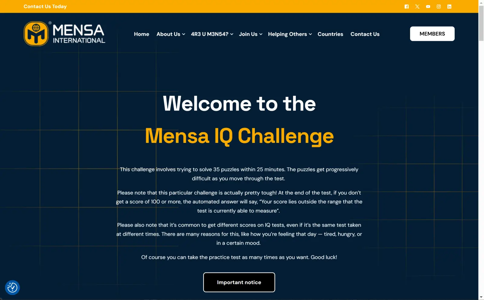 40분 안에 제시되는 퍼즐 문제를 통해 아이큐를 확인할 수 있습니다.