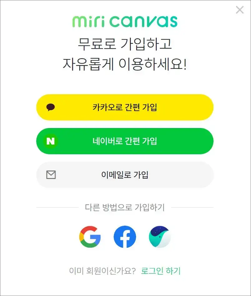 미리캔버스는 아래의 링크를 통해 접속할 수 있습니다.