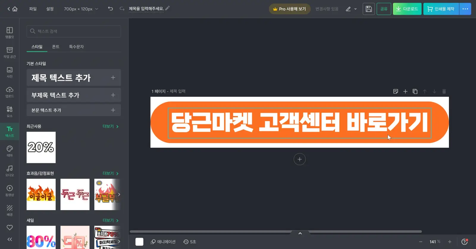 고급 편집이 가능한 'Pro' 플랜을 이용하면 프리미엄 사진과 그래픽을 제한 없이 사용할 수 있습니다.