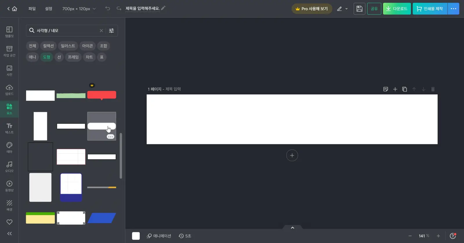 이제, 좌측의 '요소'탭에서 원하는 도형을 선택합니다.