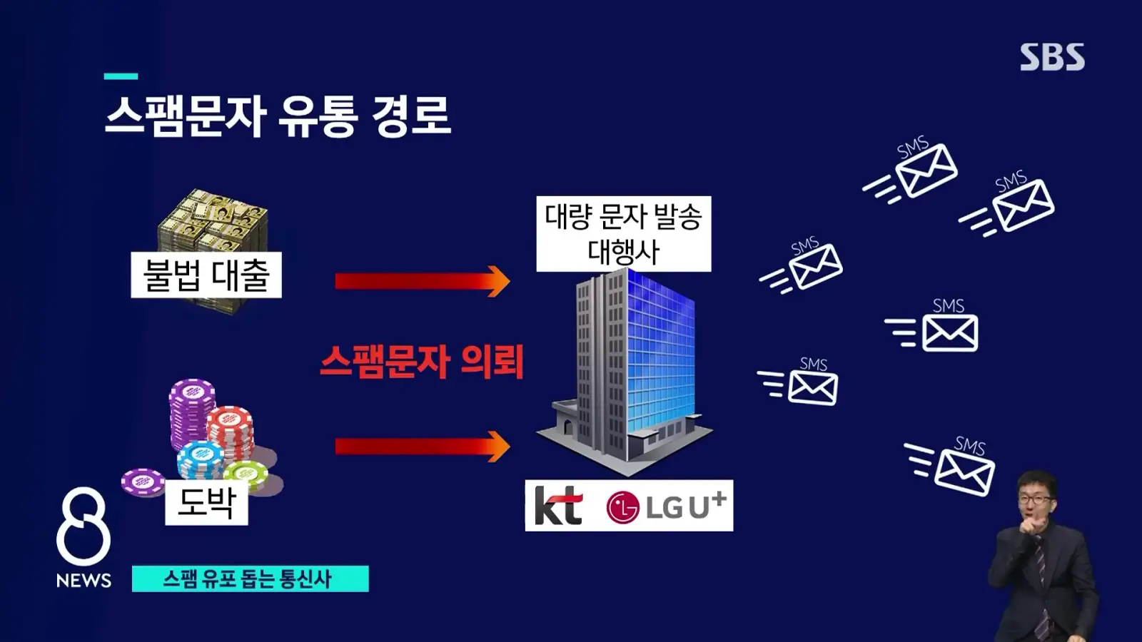 불법대출 문자나 도박 관련 스팸 문자를 대행사를 통해 KT, LG U+ 등 통신사가