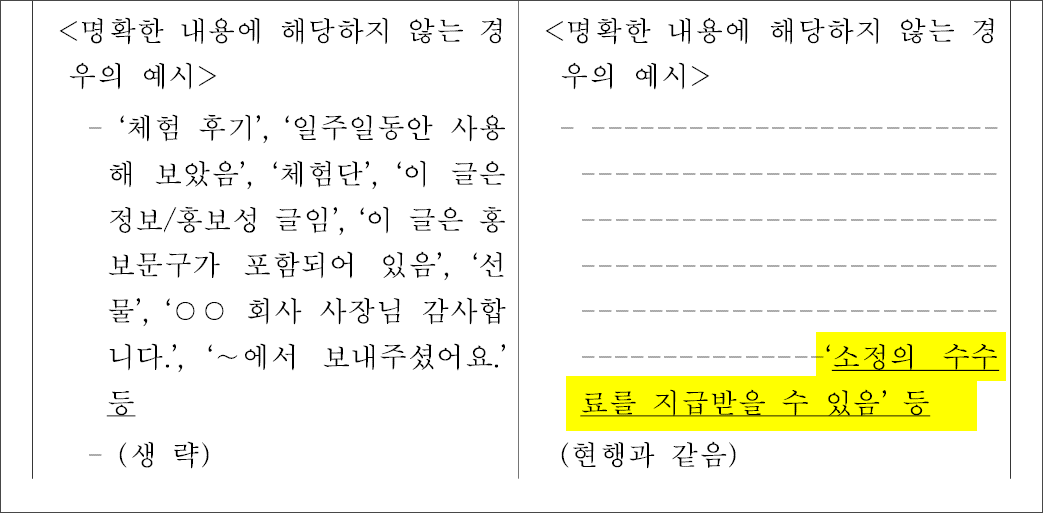 이번 개정안은 경제적 이해관계의 범위를 명확히 하여 일반적인 후기와 광고성 콘텐츠를 구별하는 기준을 마련했습니다: