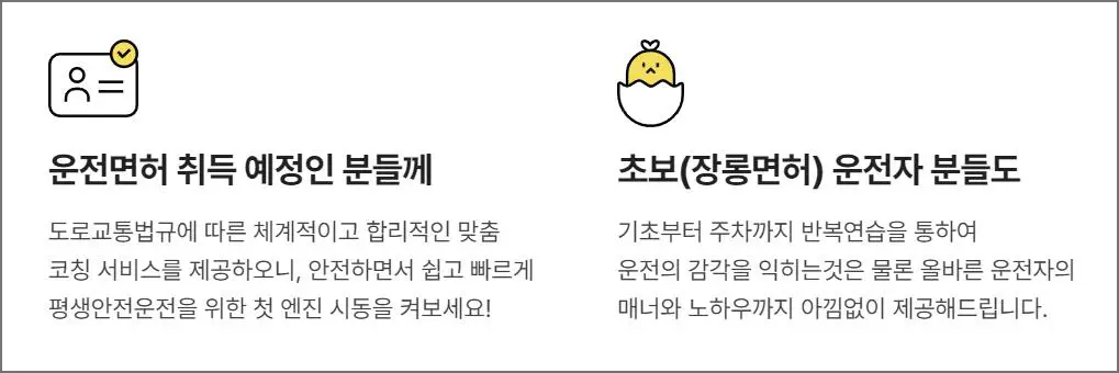 운전면허 취득을 준비하시는 분들이나 장롱면허를 꺼내 운전을 시작하시는 분들에게 충분하게 몸에 익힐 수 있는 반복학습을 통해 운전의 공포를 덜어내고, 저렴하게 운전면허 취득까지 연습할 수 있는 신촌 운전면허연습장을 추천드립니다.