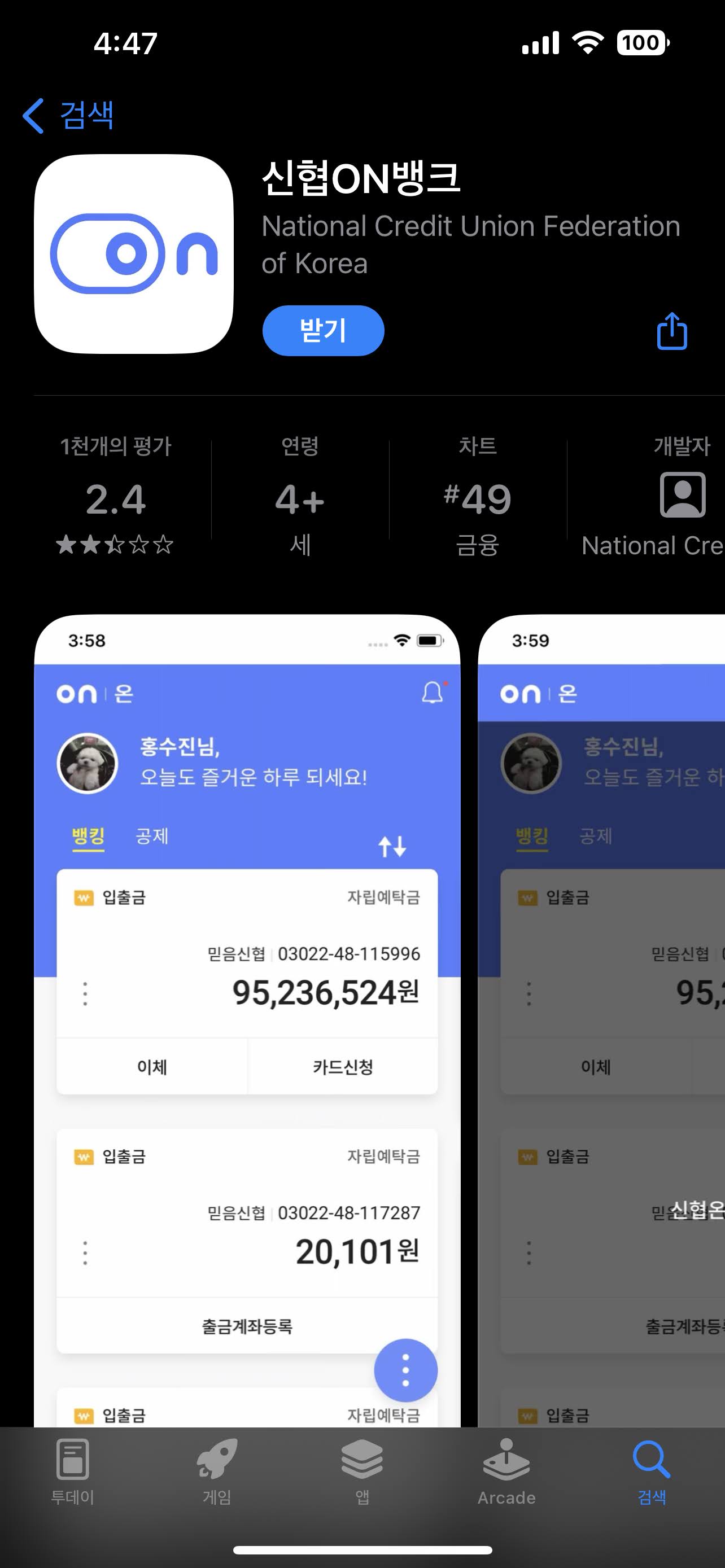 - 신협 온뱅크 어플 설치