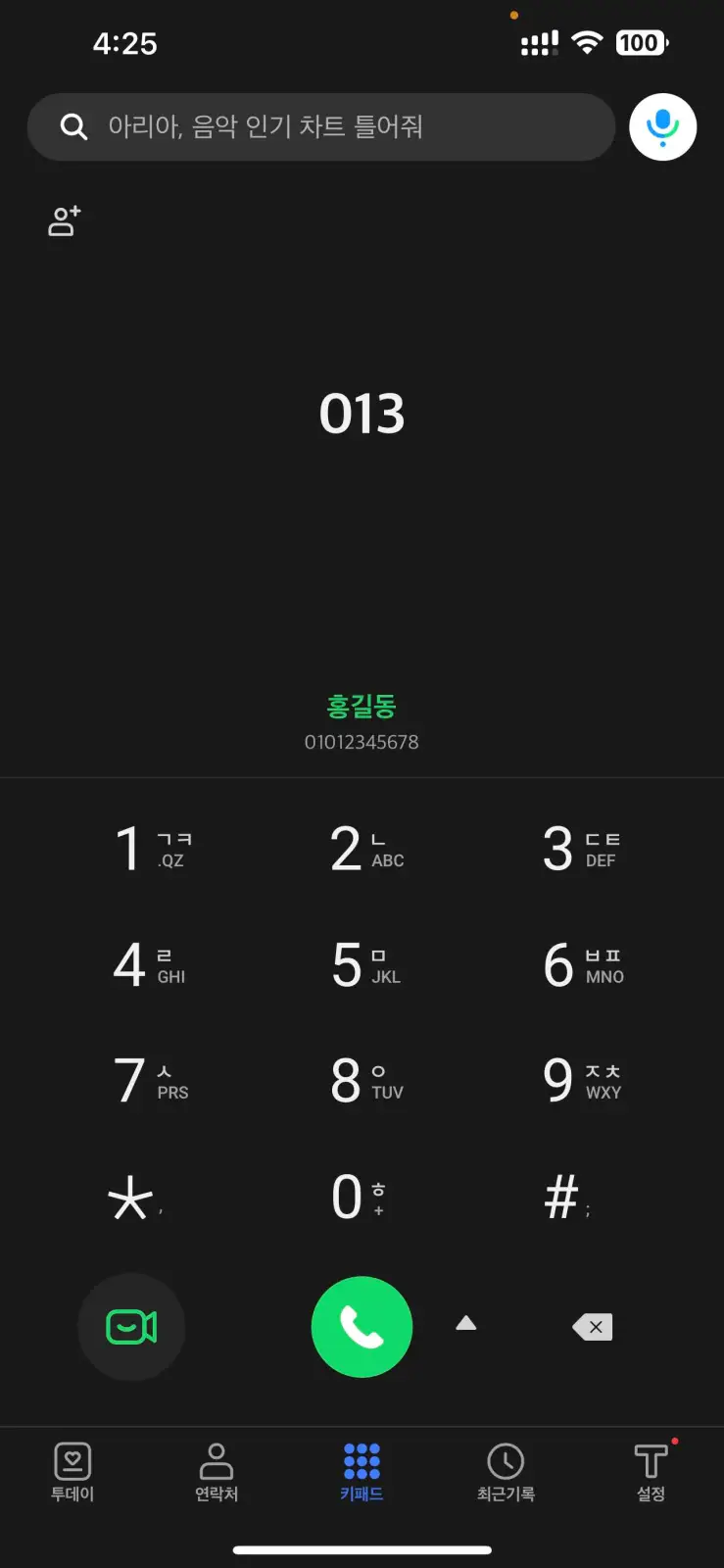SK Telecom에서 만든 'T전화' 앱은 옛날 피쳐폰처럼 다이얼의 한글 초성으로 연락처 검색이 가능합니다. 하지만, T전화를 이용한 통화내역만 기록이 되는 등 아이폰 특성으로 인해 기능의 대부분을 사용할 수 없는 단점이 있습니다.