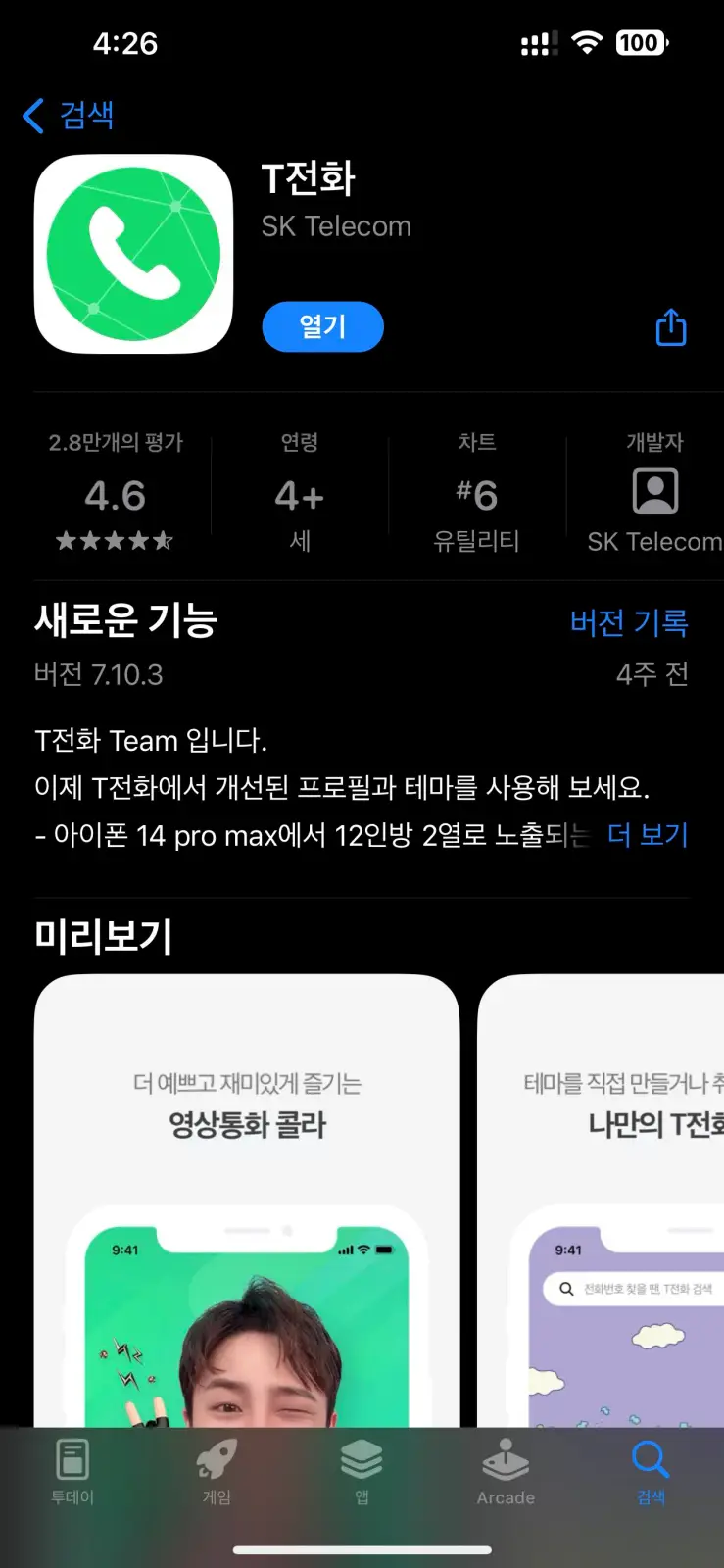 편법으로 아이폰 연락처의 아쉬움을 달랠 수 있는 T전화 앱