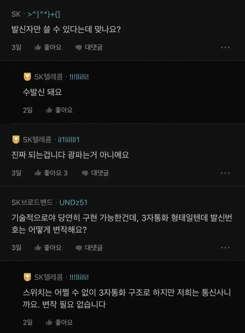 - 발신만 가능하다고 했으나 이번에 나온 내용으로는 수발신 모두 가능하다고 함