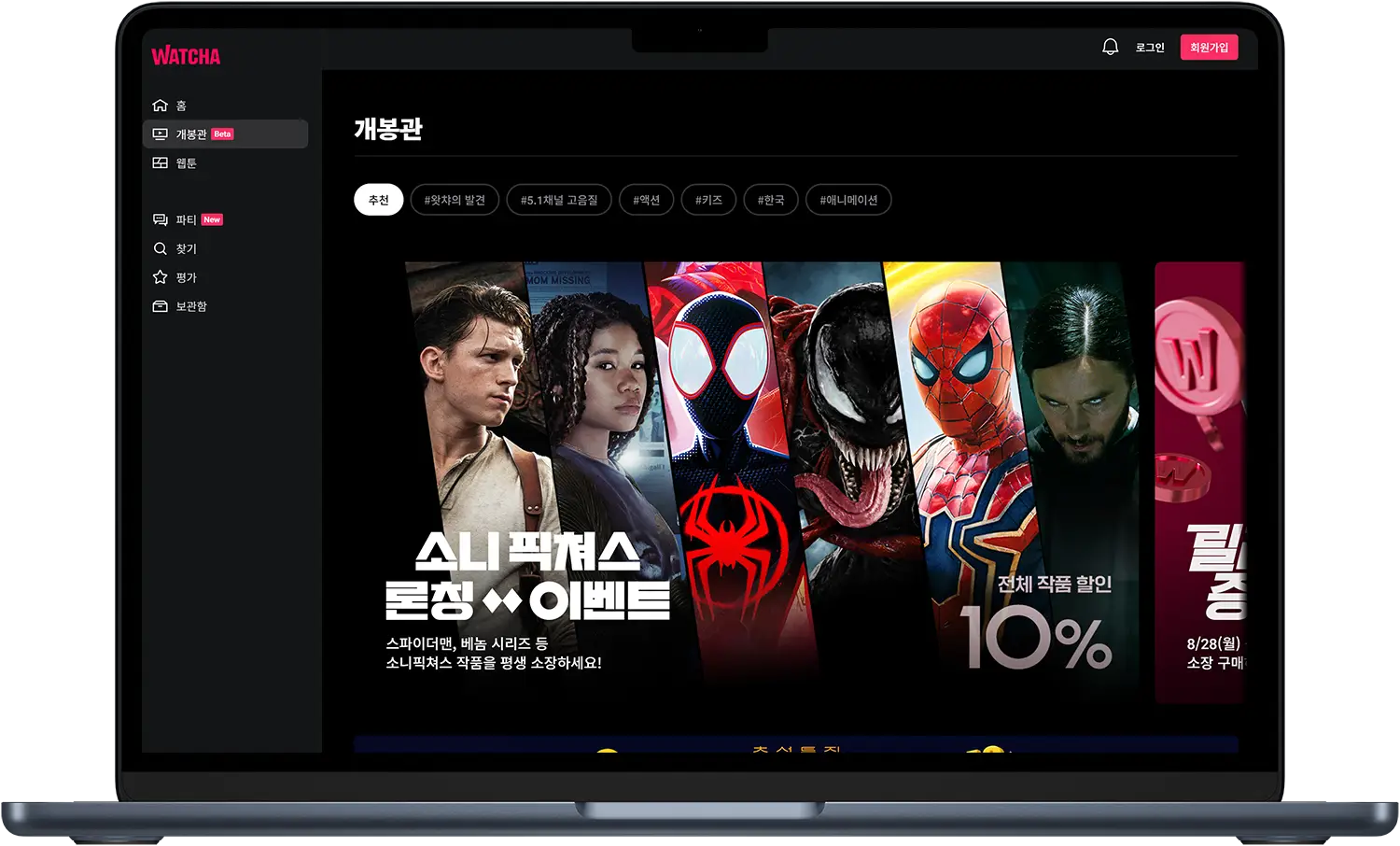 왓챠는 2012년 국내 최초의 영화 추천 서비스로 시작하여, 현재는 영화, 드라마, 예능, 다큐멘터리, 웹툰까지 다양한 콘텐츠를 제공하는 종합 OTT서비스로 성장하였습니다.