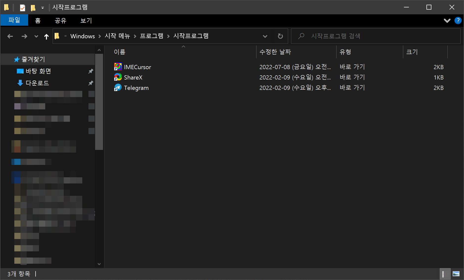 탐색기에 시작프로그램 폴더 경로 입력하기