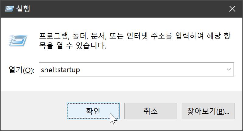 위와 같이 입력하면 시작 프로그램 폴더에 접근할 수 있습니다.