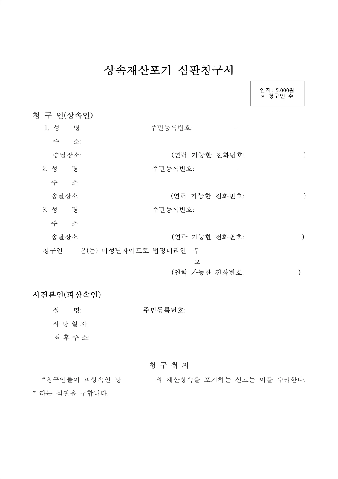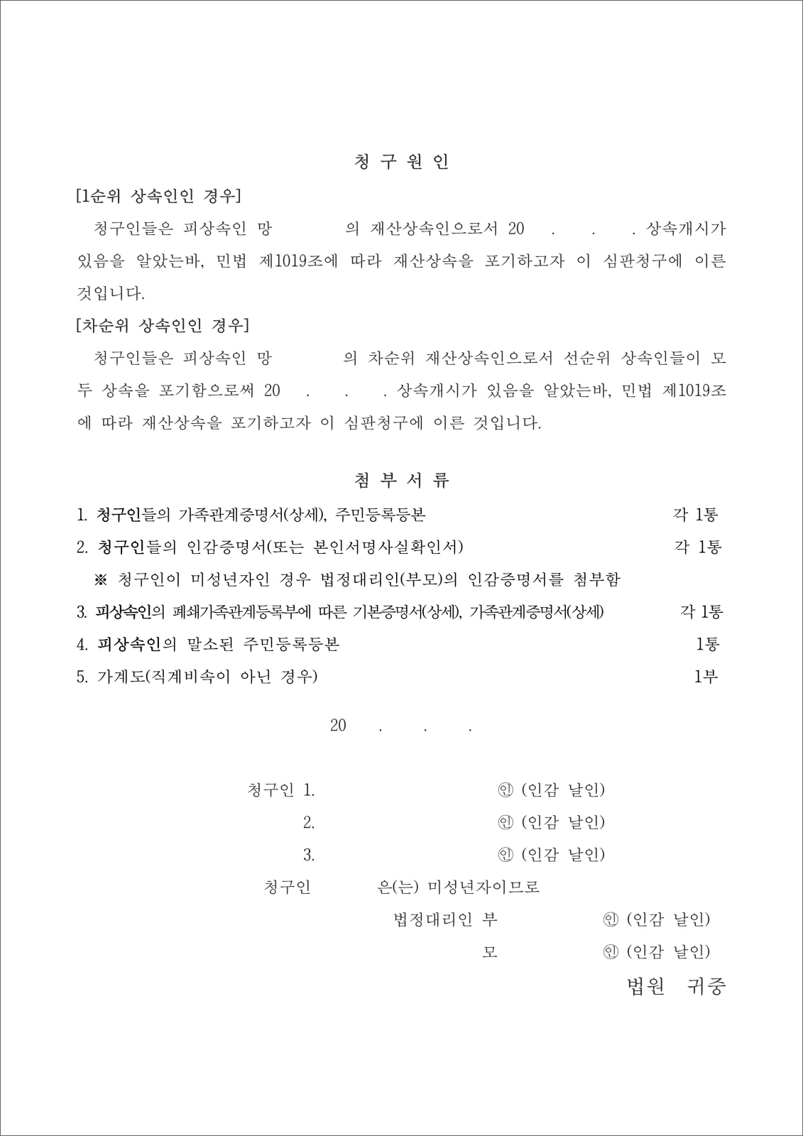 상속포기를 원한다면 정확한 양식을 사용하여 빠르게 신고하는 것이 중요합니다.