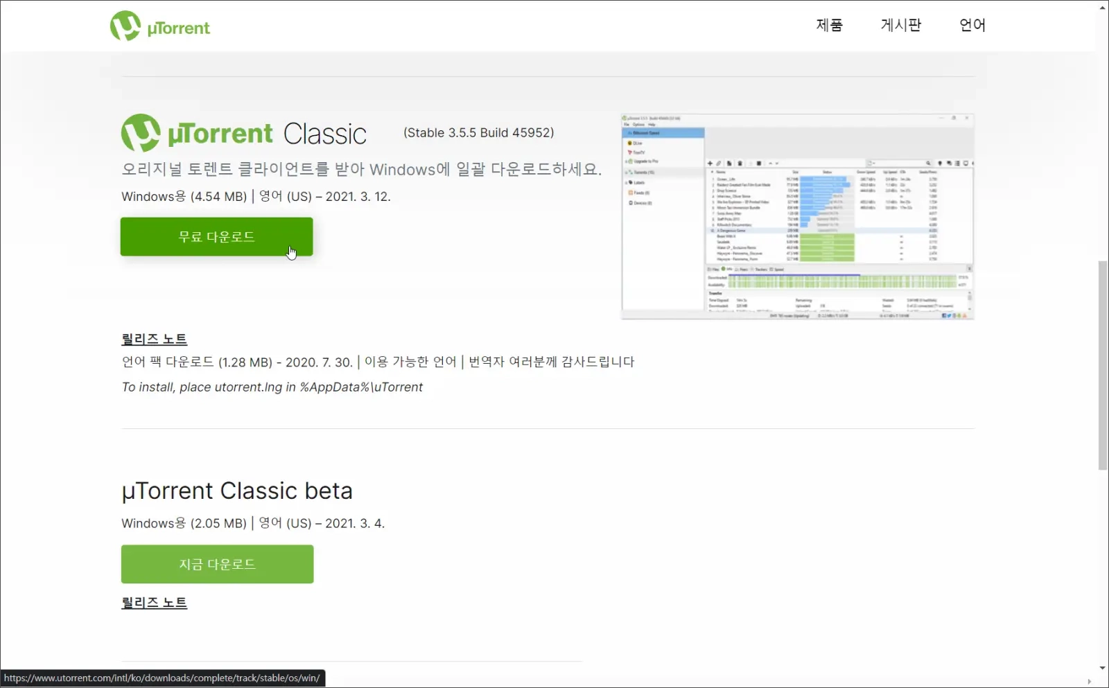 유토렌트(uTorrent) 한글판 무료 다운로드 바로가기