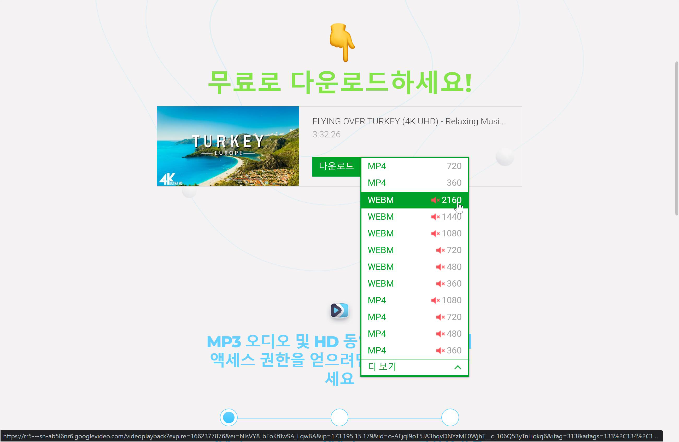 원하는 화질을 선택하여 바로 다운로드가 가능합니다.