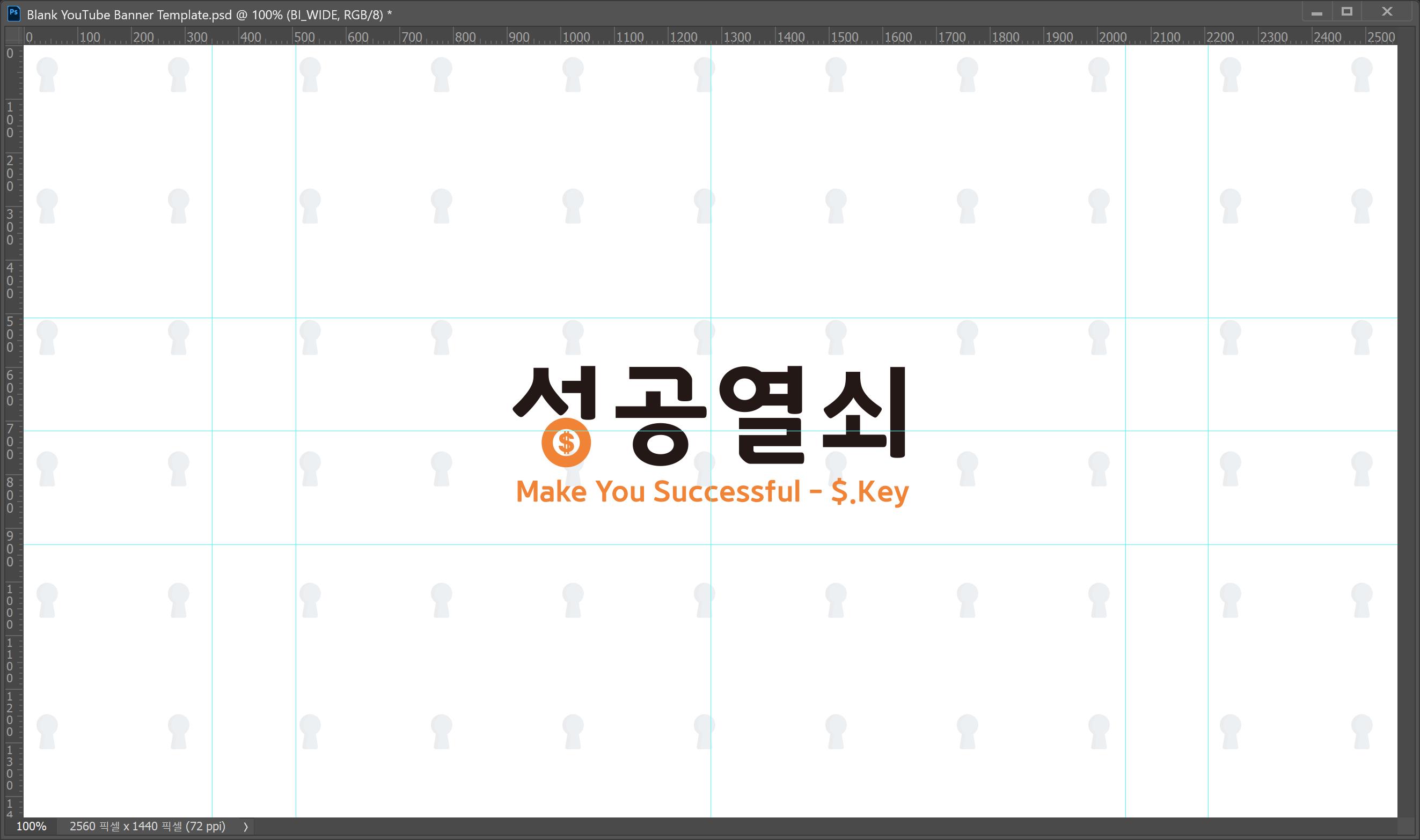 포토샵 PSD파일을 열어 위와 같이 중앙의 Saft Area 1546x423 px 안에 로고나 문구 등 채널을 대표하는 이미지로 구성한 후 여백 부분은 흰색보다는 연한 색이나 단순한 배경 패턴을 적용하여 사용하면 좋습니다.
