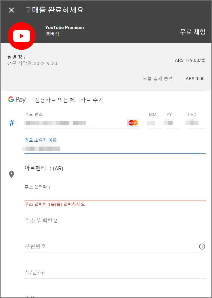 유튜브 프리미엄 아르헨티나 가족 계정 추가 오류 해결 방법