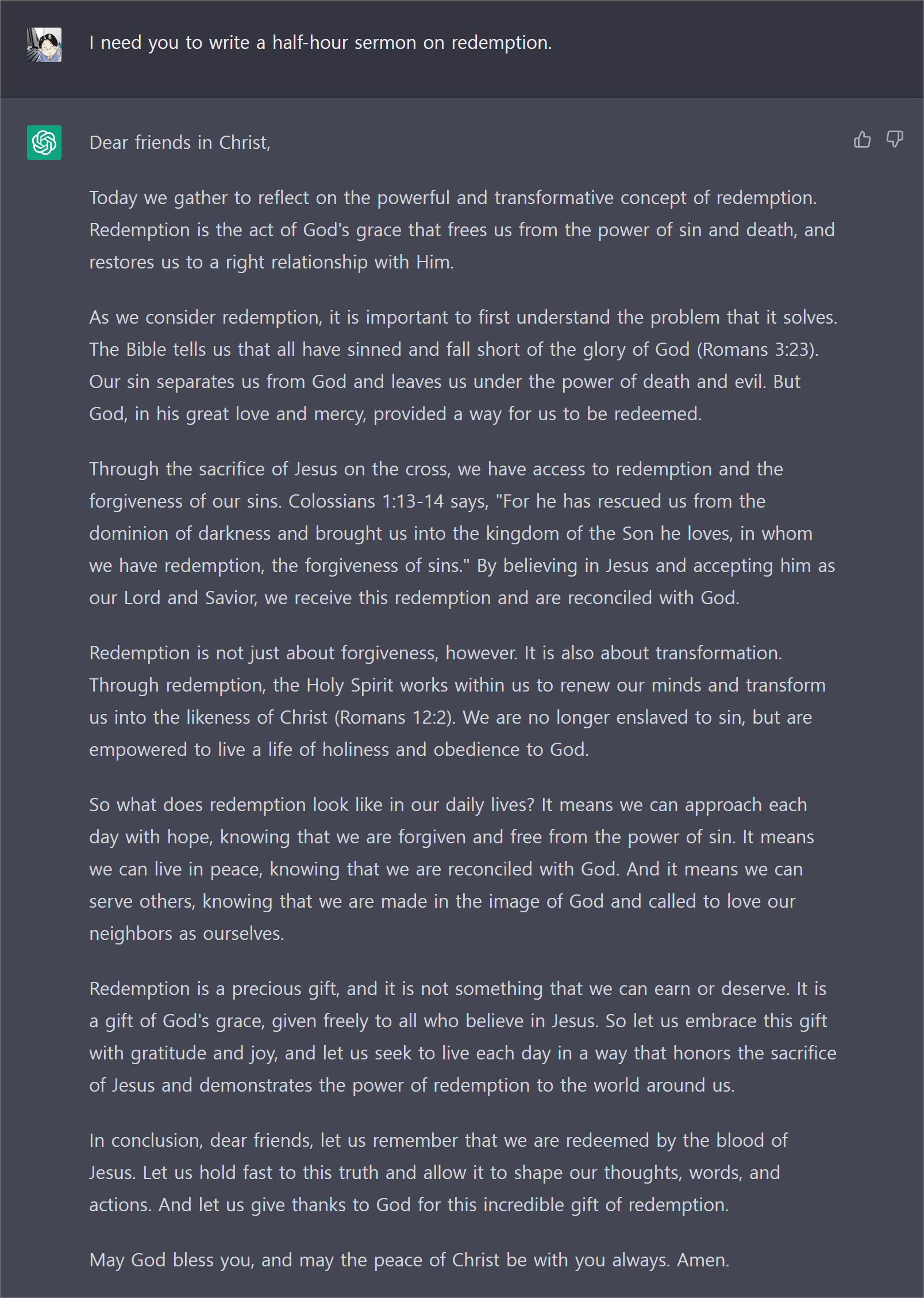 챗 GPT(ChatGPT)로 교회 설교문을 작성할 수 있을까?