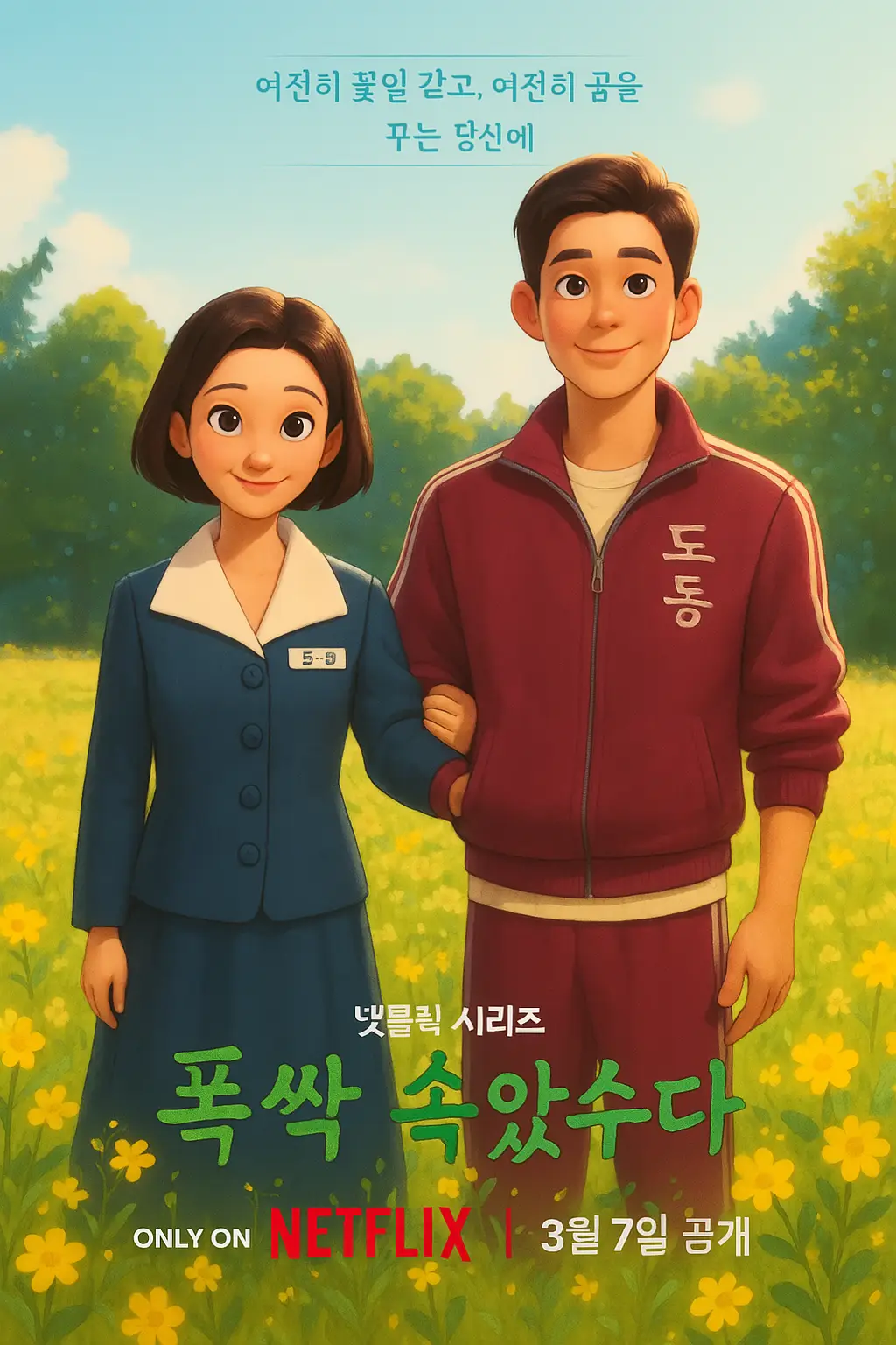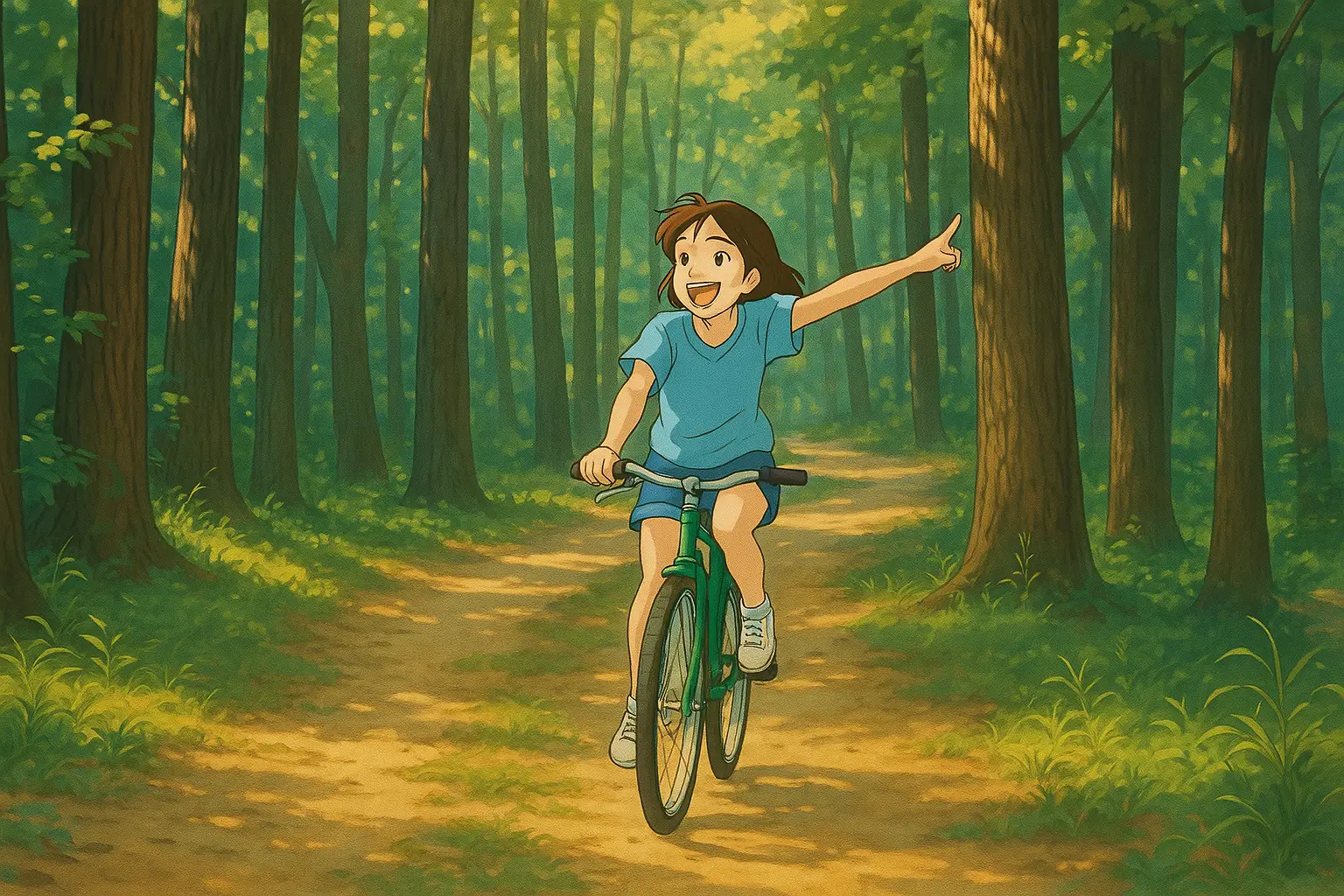 • "지브리 애니메이션에서 튀어나온 것처럼 배경을 자연 풍경으로 그려줘"