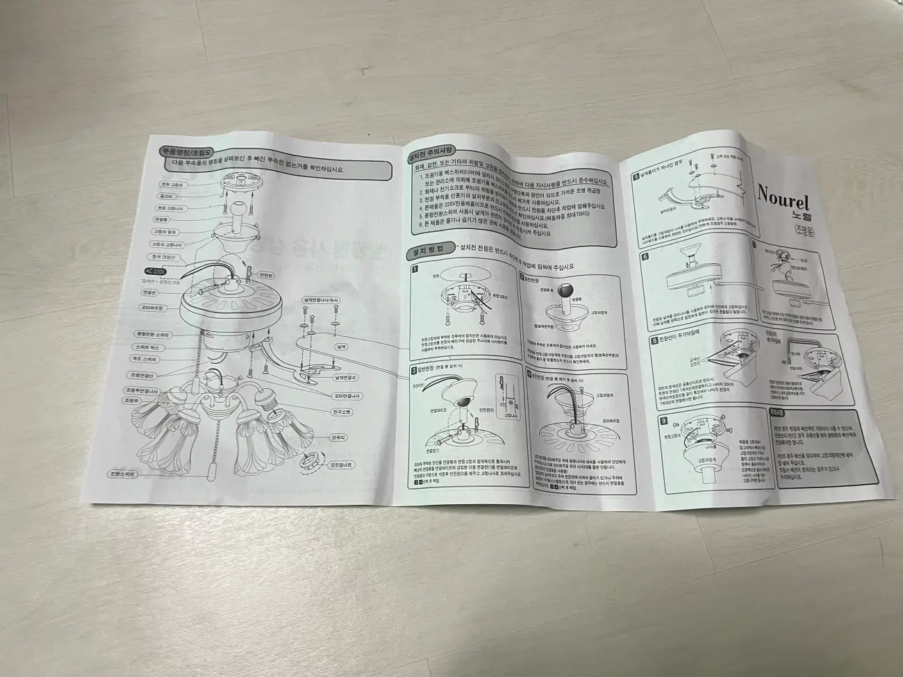 구입한 제품은 '아텍스 노렐'이라는 모델의 천장 실링팬입니다. 날개 아래쪽에 조명 5개를 설치할 수 있으며, 날개 길이가 폭 132cm 정도로 길어서 확실하게 공기 순환이 가능할 것 같았습니다.