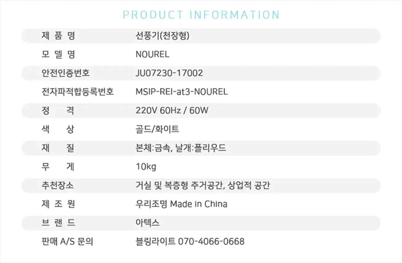 - 흰색 제품의 경우는 날개에 LED전구의 불빛이 반사되어 실내가 아른거리는 증상이 있음
